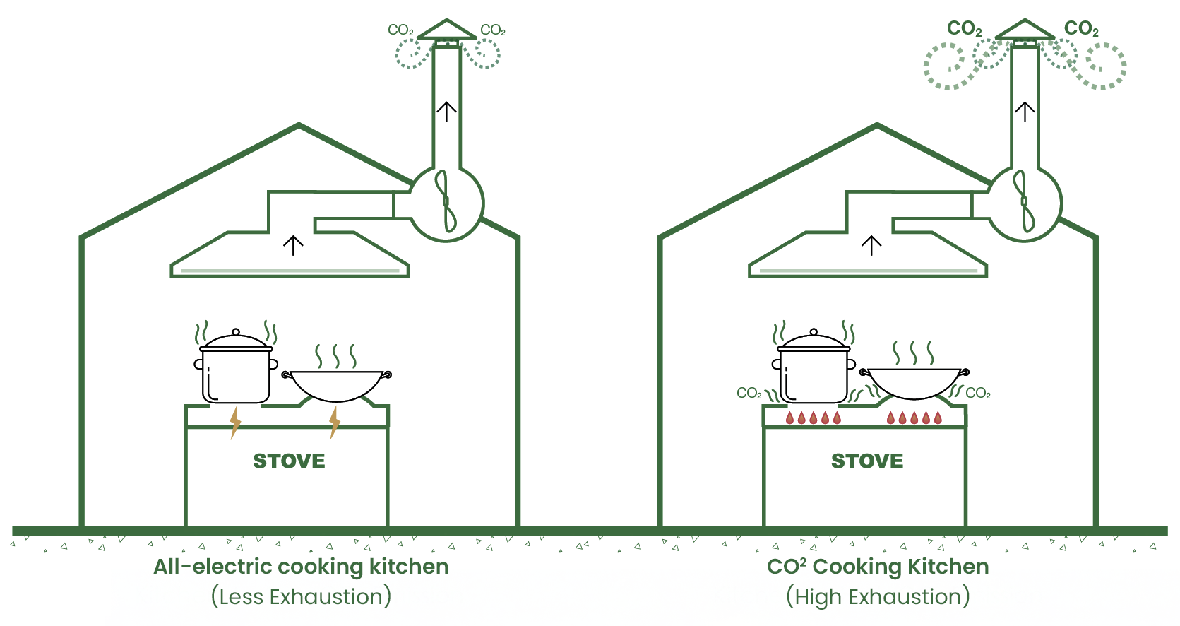 Commercial kitchen emissions, including fuel residues, detergents, disinfectants, wastewater, greasy exhaust air, and MVAC system heat, require proper treatment or reduced usage to protect the environment.